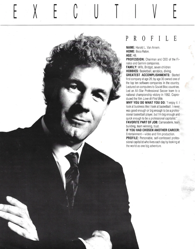 Few people have had a more fascinating personal and business life than Harold “Sonny” Van Arnem. From a Midwest middle-class family, he surmounted a range of obstacles, including a near-fatal accident that ended what might have been a career as a professional athlete, to ride America’s computer revolution from its first primitive days.
